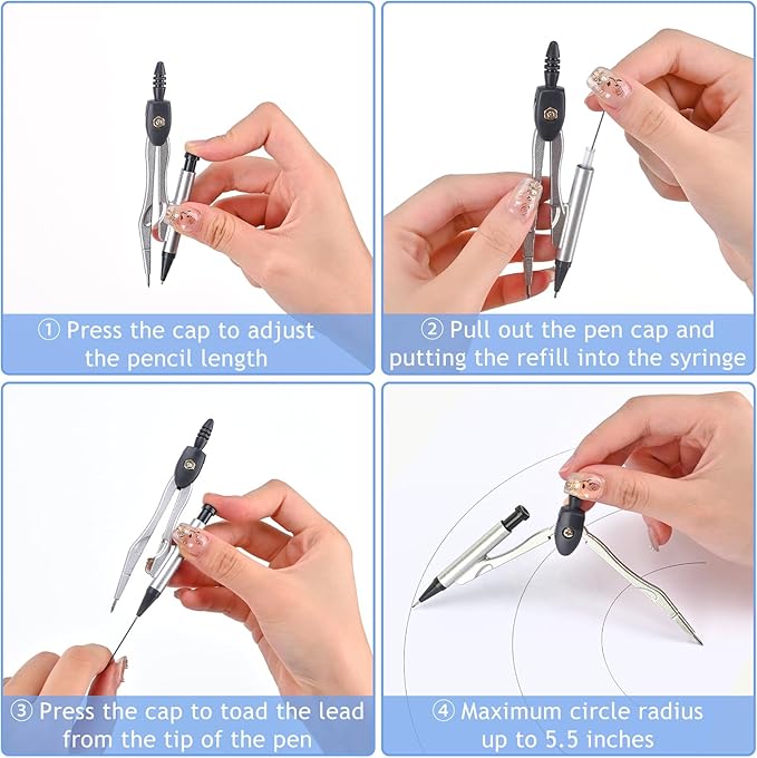 - Versatile Applications: Whether you're a student, artist, designer, or engineer, this aluminum alloy ruler set and drawing compass have you covered. These geometry tools cater to a wide range of needs, from drafting and drawing to measuring and marking