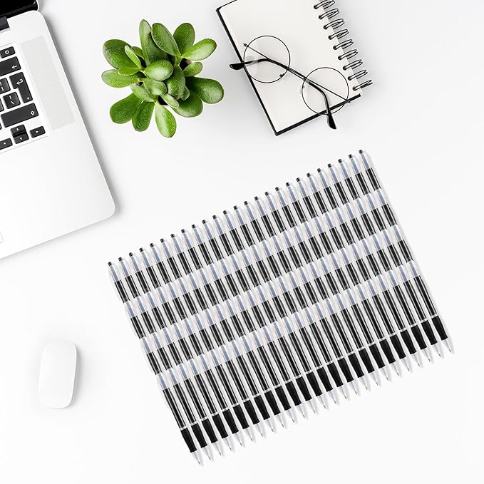 - 【Super Smooth writing experience】: The Retractable design ensures that these ballpoint pens have black ink ready to use at any time. The black ink color produces clear text, making it easy to read. The pen tip slides effortlessly on paper, providing a smooth and enjoyable writing experience that will make any task more comfortable.
