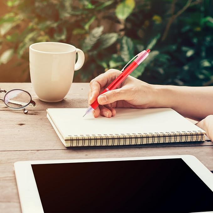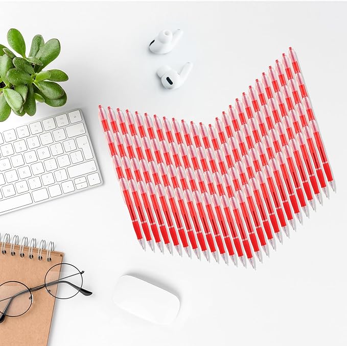 - 【Smooth writing experience】: The Retractable design ensures that these ballpoint pens have red ink ready to use at any time. The red ink color produces clear text, making it easy to read. The pen tip slides effortlessly on paper, providing a smooth and enjoyable writing experience that will make any task more comfortable.