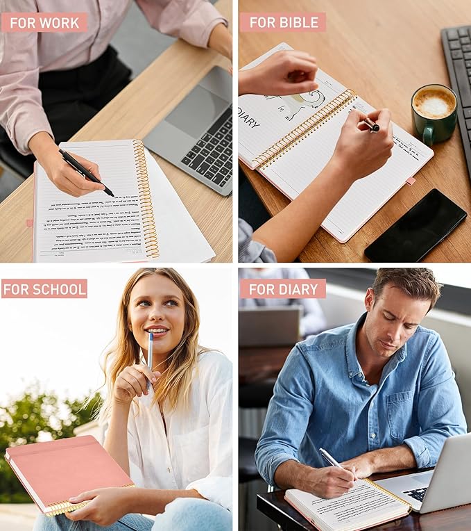 - 【Wide Usage】 Hardcover spiral bound notebook ideal for school, office, home, work, college, business, students, adults, travelers. Suitable for study, diary, journaling notebooks, plan, drawing, sketching, journals for writing, personal daily notebook, travel journals, school work notebooks or for note taking in college class or meeting. Our big leather notebook also a great gift for moms, dads, teachers, classmates, co-workers, wives, husbands, friends, daughters, sons and granddaughters.