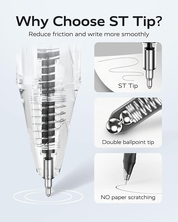 - [Super Thin Tip]: The double ballpoint tip design reduces friction, the ink pen flows smoothly and glides effortlessly without scratching the paper, offering smooth and comfortable writing experience