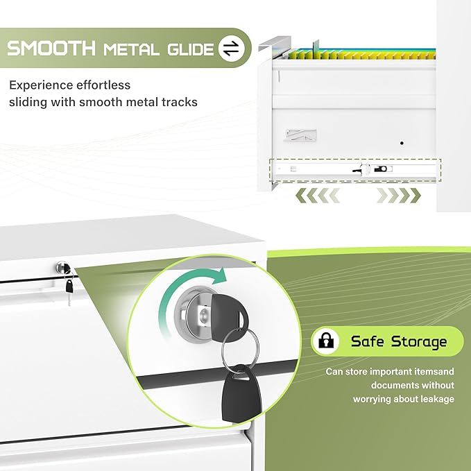 - 【Reliable Locking system】 The office file cabinets are equipped with two keys and an interlocking system that can lock all drawers simultaneously for your daily use and keep your important documents safe even when you are out of the office.