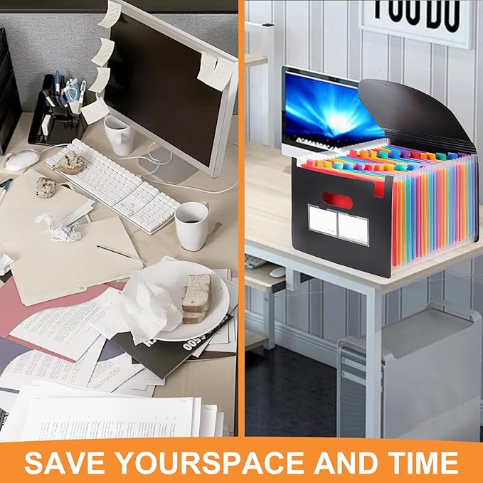 - Perfect Document Organization: 24 pockets, can store more than 4000 paper documents, suitable for A4/ letter size paper, suitable for storing documents in daily life. It stands on the table by itself and is not easy to tip over. Extended File Organization is a perfect file organization for home, office, school and travel