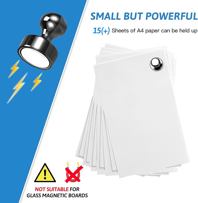 - 【Best Organiser】With these magnetic push pins, everything will become tidy and orderly. Perfect for holding paper, posters, cards, photos, school paperwork, kids' artwork, note list, or potty training charts sliding on whiteboards, fridges, bulletin boards, magnetic maps, calendars, lockers, file cabinets, and other magnetic surfaces.