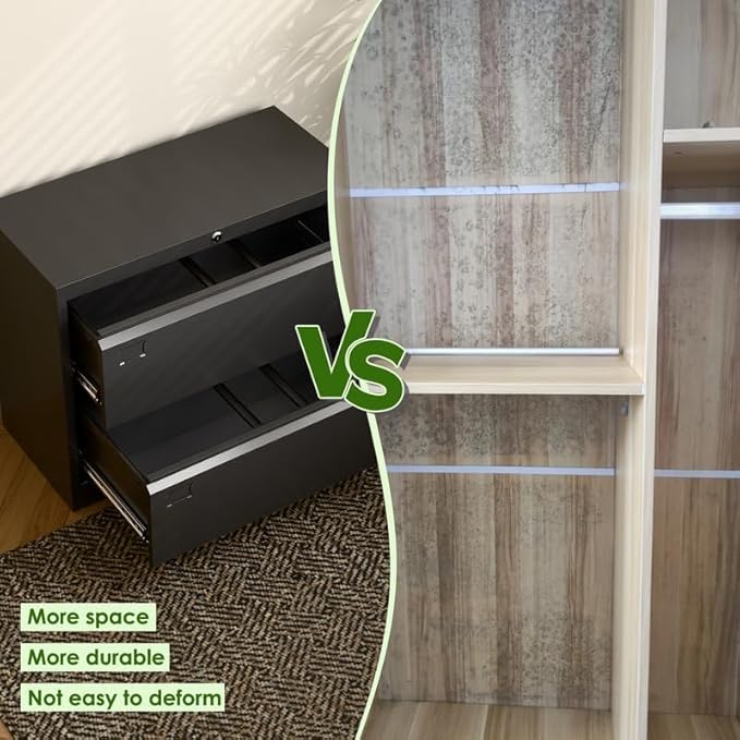 - [All-steel Stable-Rustproof] 2 drawer lateral file cabinet has a reinforced steel frame with a corrosion and stain-resistant powder coat, Rugged and not easily deformed,which is ideal for long-term use.