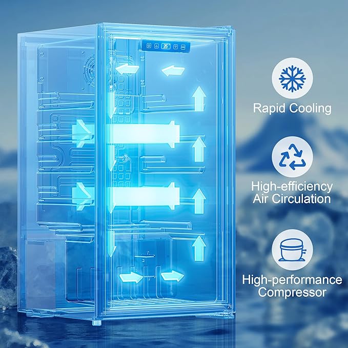 - ๐ฆ๐บ๐ฎ๐ฟ๐ ๐ง๐ฒ๐บ๐ฝ๐ฒ๐ฟ๐ฎ๐๐๐ฟ๐ฒ ๐๐ผ๐ป๐๐ฟ๐ผ๐น:This smart beverage refrigerator features an intuitive Touch Temperature Control system with a clear Digital Display, allowing you to easily customize the temperature to suit your needs. Whether you're chilling sodas, beers, or aging fine wines, you can maintain an ideal temperature range from 35ยฐF to 65ยฐF. The efficient compressor cooling system provides quick cooling with minimal noise, ensuring a smooth and enjoyable drinking experience.