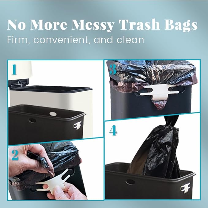 - Hassle-Free Trash Bag Management: Say goodbye to messy trash bags! Secure your bags effortlessly with the included rubber band on the removable kitchen waste bins for a cleaner and more convenient waste disposal experience.
