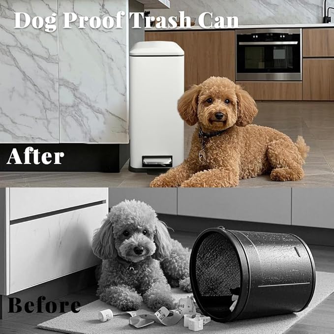 - Pet-Proof & Soft Close Lid:Tall trash can with lid ensuring a smooth and quiet closing every time. This step trash can is perfect for families with small children or pets.Dog proof trash can also prevents pets from tipping over and stays open for convenient use.