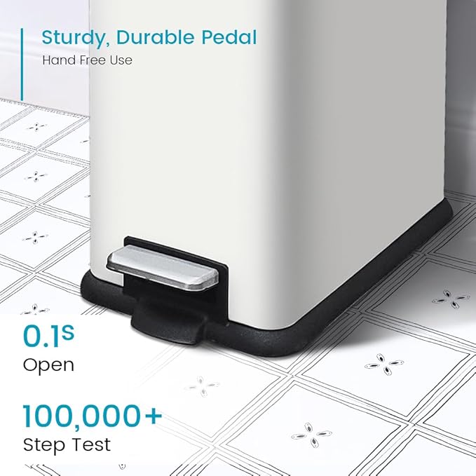 - Strong Steel Pedal: 12 Gallon pedal kitchen garbage cans is built with an easy step foot pedal for hands-free use. JM ·YIPENG step trash can allowing you to step more than 20 steps a day for 20 years, engineered up to 100,000 steps.