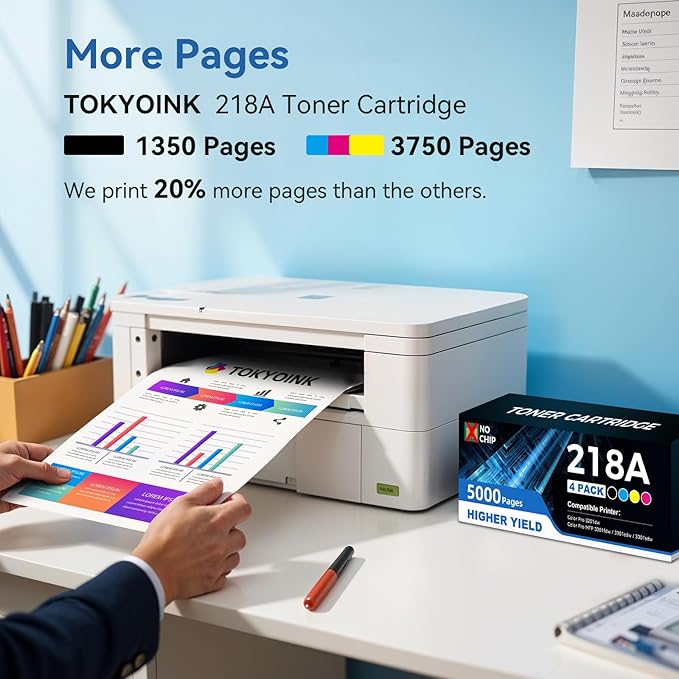 - No Chip: TOKYOINK 218A High Yield compatible toner cartridge 4 Pack do NOT come with chip, please remove the OEM 218X or 218A CHIP and install it into our new 218A High Yield toner cartridge