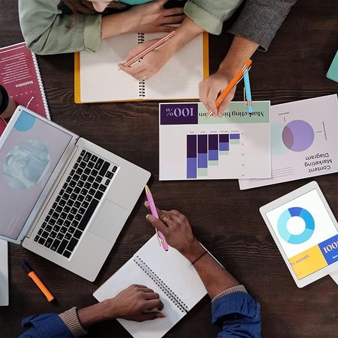 12 PCS 2 in 1 Stylus Ballpoint Pen with Stylus Tip, 1.0 mm Black Ink Metal Pen Stylus Pen for Touch Screens (Rose Gold & Mix3)