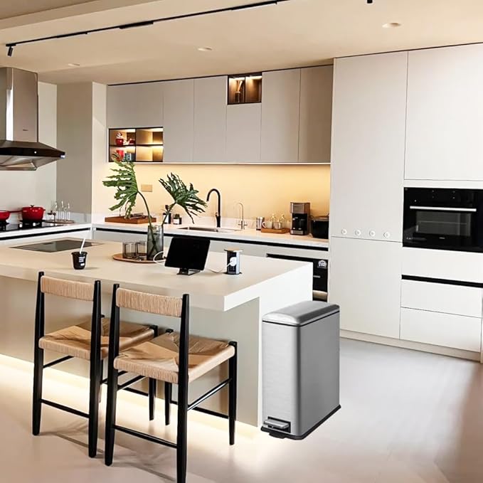 - Silent Close Lid Technology: Say goodbye to noisy trash cans! Garbage can 8 gallon is equipped with a silent close lid mechanism, ensuring a smooth and quiet closing every time. This feature is perfect for families with small children or pets, as well as those who appreciate a peaceful home environment