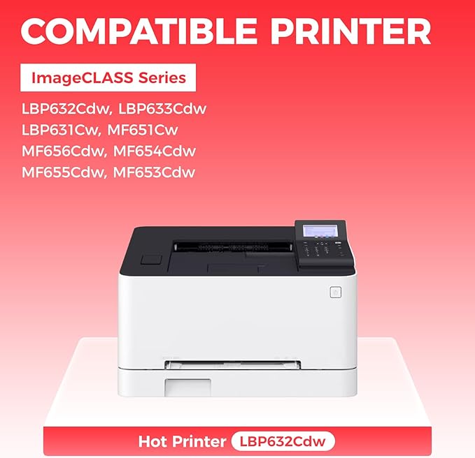 - Compatible Printers: Compatible with Canon Color ImageCLASS LBP632Cdw LBP633Cdw LBP631Cw MF651Cw MF656Cdw MF654Cdw MF655Cdw MF653Cdw Series Printer.