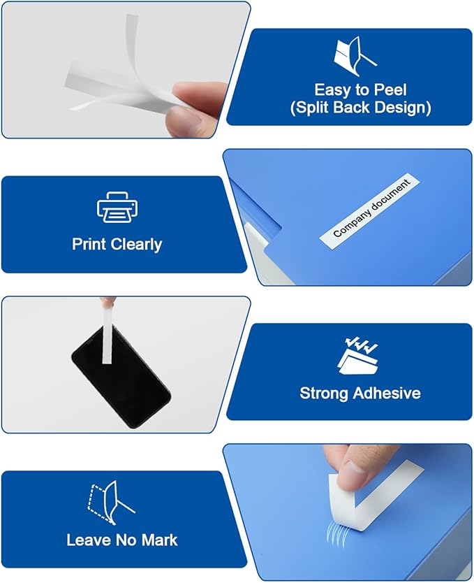 - Easy to use: These TZ 12mm 0.47 Laminated White tapes comes with split backing design, the backing tape is split lengthwise in the middle for easy peeling, and all of Labelwell Laminated White TZe TZ Tapes with the feature of water resistant, temperature resistant, fade resistant, oil resistant, abrasion resistant, chemical resistant, and no sticky residue