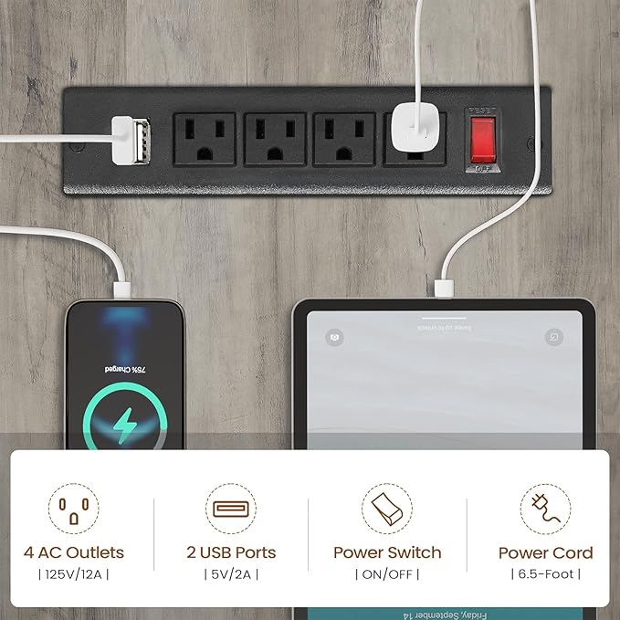 - 【Built-in Charging Station】Our charging station includes 4-Outlet & 2 USB Ports to provide power for up to 6 devices simultaneously. Also includes an on-off switch, thanks to the on-off switch, one-button power off to ensure safe electricity use, which strengthens security.