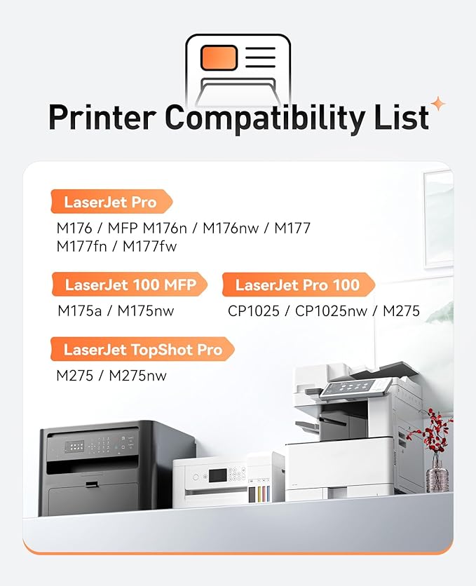 - Compatible Printer: Compatible with HP Color LaserJet Pro M176 MFP M176n M176nw M177 M177fn M177fw HP LaserJet Pro 100 CP1025 M275.Color LaserJet 100 MFP M175a M175nw LaserJet TopShot Pro M275 M275nw LaserJet Pro CP1025 CP1025nw series printer.