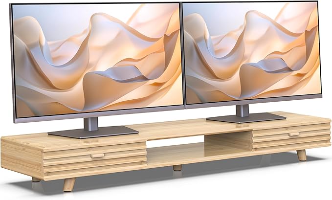 - 【Solid Bamboo & Eco-Friendly】Chemical-free compressed bamboo withstands 220lbs. Natural moisture-resistant texture, ideal for 32-inch monitors. 5X more durable than MDF