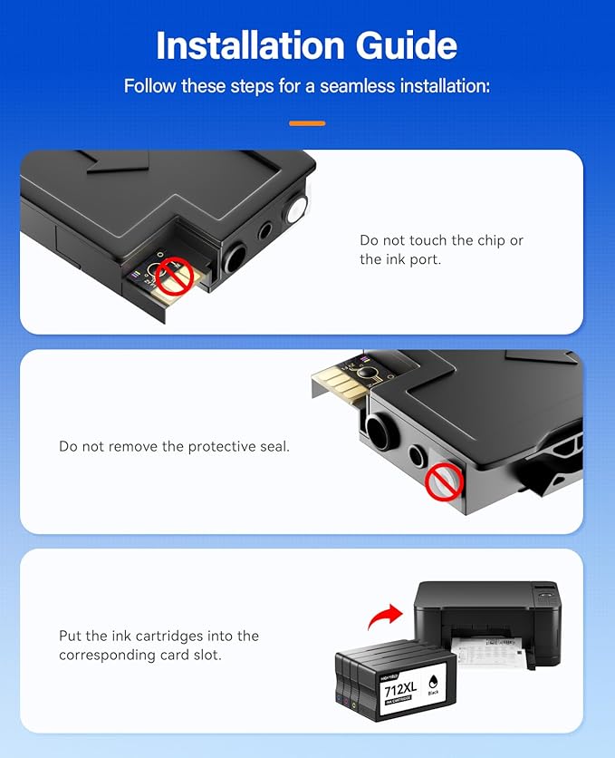 - 【Warm Tip:】Please check the printer model of this Ink Cartridge for 712 712XL Ink Cartridges and make sure your printer model before placing an order.