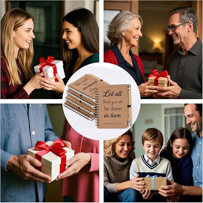 - Deluxe Scripture Notebook & Pen Set – Includes 30 spiral-bound notebooks and 30 bamboo pens across 5 inspirational Bible verses (6 notebooks and 6 pens per verse). Perfect for group sharing, study events, or bulk gifting.