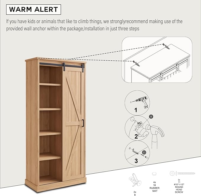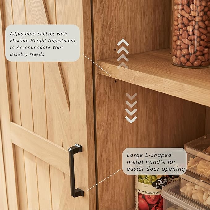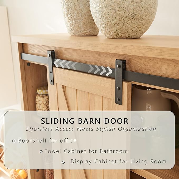- STYLISH DESIGN: The Tall Storage Cabinet combines design with practicality. The rustic barn sliding door design makes a statement, injecting modern elegance into your living room while providing easy access to the cabinet's spacious storage space.The U-shaped metal handle adds a stylish touch to the storage cabinet. Its streamlined design is not only aesthetically pleasing, but also ensures that the cabinet doors operate smoothly and effortlessly. It is suitable for any home