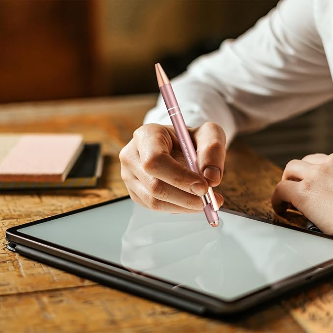- 【Versatile Design】: The two in one design of touch screen stylus provides more functions. Easily take notes on paper or phone/tablet screens. In addition, it does not require charging, saving you time and trouble.