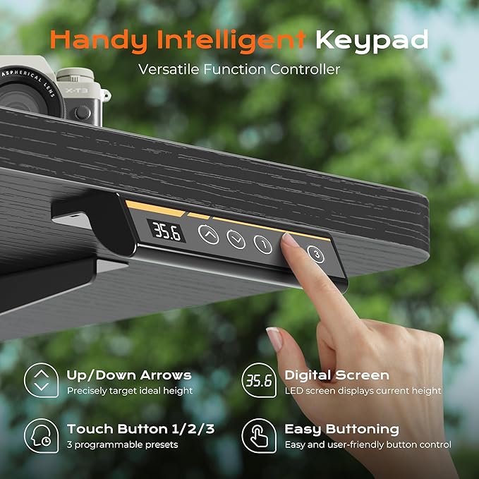 - 【Multi-Function Intelligent Keypad】Operating Voltage: 110 - 220V. Featuring a sleek LED display and easy-buttoning keypad, this adjustable standing desk offers 3 customizable height presets and precision up-and-down controls. This standing desk for walking pad allows you to switch between sitting and standing at the press of a button, with an adjustable height range from 28.3" to 46.5". Say goodbye to sedentary habits and hello to improved focus, energy, and posture with this electric standing desk