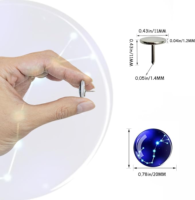 - Cubicle Accessories: 24 Horoscope push pins studs are creative and novel, I believe you will like it. The studs come with a clear plastic box for easy storage and use.