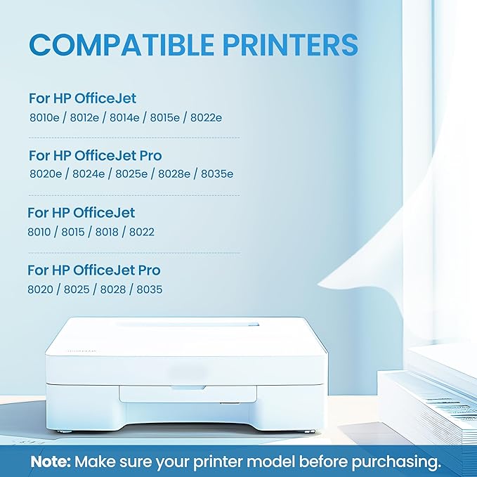 - Printer Compability: Compatible with (1) HP OfficeJet 8010, 8010e, 8012e, 8014e, 8015, 8015e, 8018, 8022, 8022e; (2) HP OfficeJet Pro 8020, 8021,8020e, 8024,8024e, 8025, 8025e, 8028, 8028e,8030,8030e, 8035, 8035e Printer.