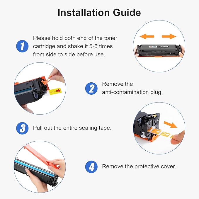 - Package Contents: 1x 128A Black Toner Cartridge, 1x 128A Cyan Toner Cartridge, 1x 128A Magenta Toner Cartridge, 1x 128A Yellow Toner Cartridge.