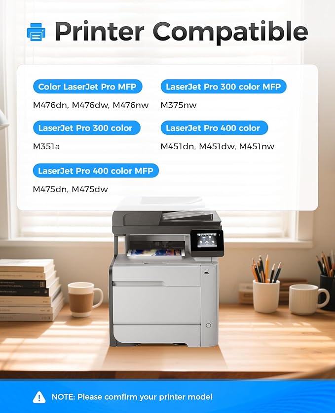 - Compatible Printers: Compatible with HP Color LaserJet Pro MFP M476dn M476dw M476nw, LaserJet Pro 300 color M351a, LaserJet Pro 300 color MFP M375nw, LaserJet Pro 400 color M451dn M451dw M451nw, LaserJet Pro 400 color MFP M475dn M475dw Series Printer.