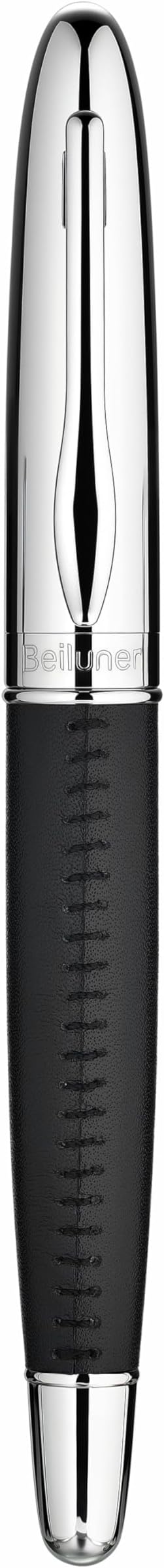 BEILUNER 318 Luxury Leather Pen, Hand-Stitched Premium Leather, Chrome-Plated Finish, Schmidt Ink Refill, Best Rollerball Pen Gift for Men & Women, Refillable, Executive Writing, Nice Pens