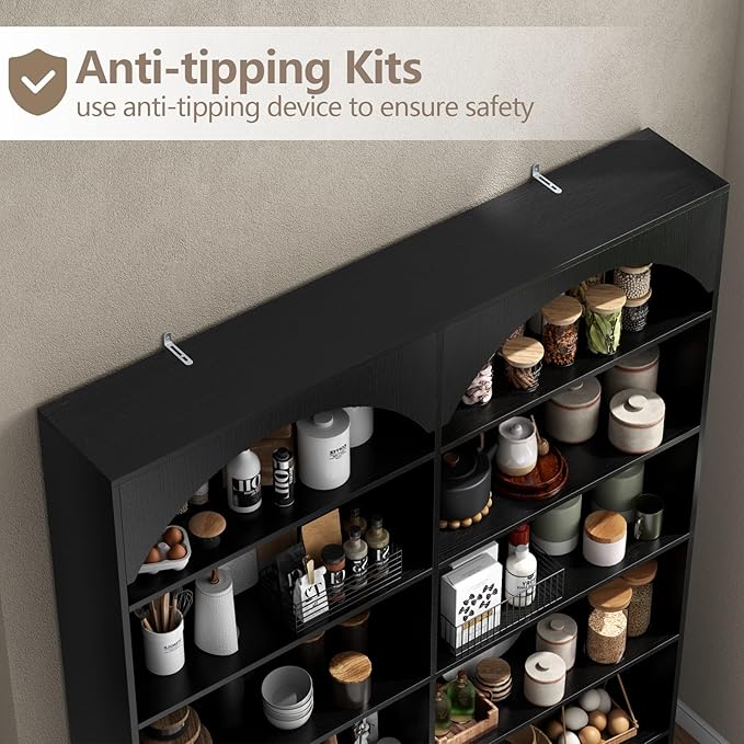 70.8’’ Tall Bookshelf and Bookcase, 7-Tier Double Wide Bookcase Modern Large Open Display Shelves with Curved Baffle for Home Office Living Room (Black)
