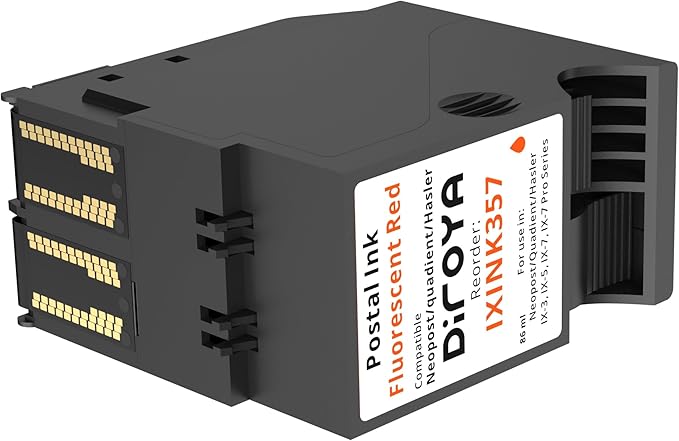 - Print throughput: with the IXINK357 fluorescent red ink cartridge can support up to 18,800 impressions, Whether you are using a Quadient, Neopost or Hasler IX-3, IX-5, IX-7, IX-7 Pro Series Franking Machine, the IXINK357 ink cartridge will help you lower your cost per print.