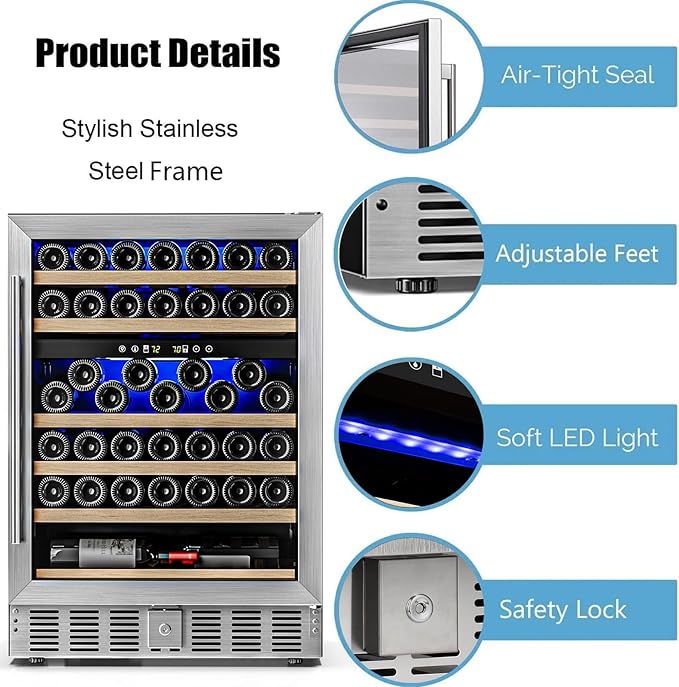 Antarctic Star 24 Inch Wine Fridge, 52 Bottle Wine Cooler Refrigerator. 39-64°F Dual Zone Wine Refrigerator Glass Door, Built in or Freestanding Under Counter Fridge for Home Bar Office