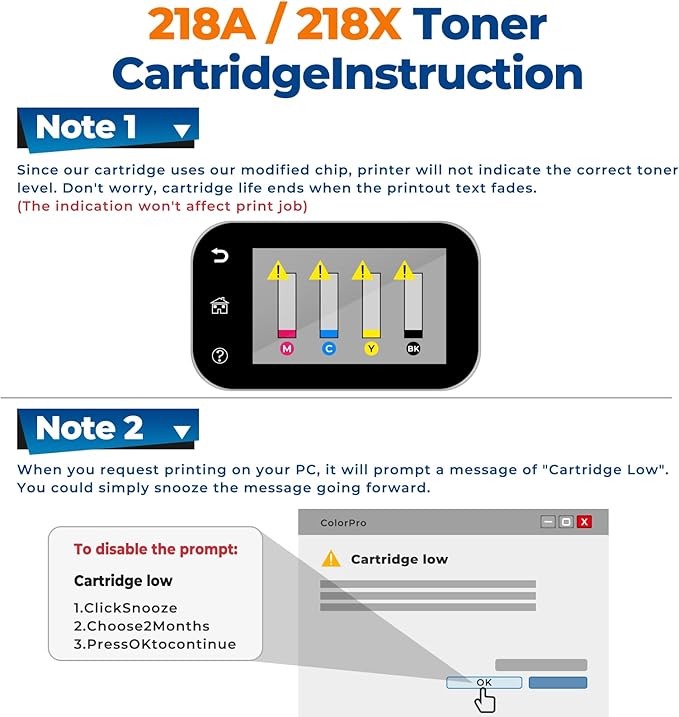 - These 218X toner do NOT come with chip, please transfer the OEM 218A/218X chip to these unchipped compatible 218X toner cartridges 4-pack. This way to reducing e-waste and extending the lifespan of original chips.
