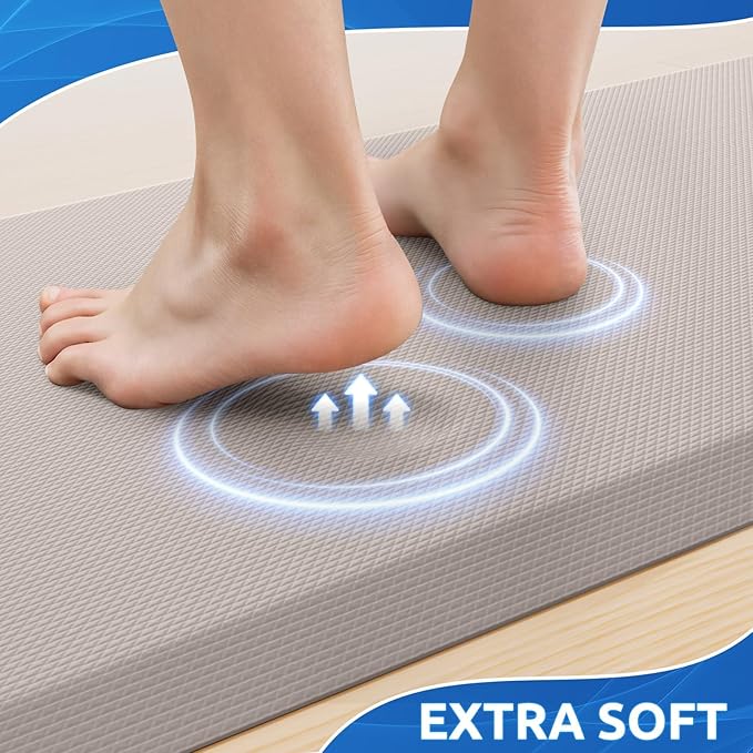 - EASY CARE: The anti-fatigue kitchen mat's surface is resistant to dust and debris. Its waterproof and stain-resistant material ensures easy cleaning with just a damp cloth, vacuum, or sweep, saving cleaning time and extending the mat's lifespan