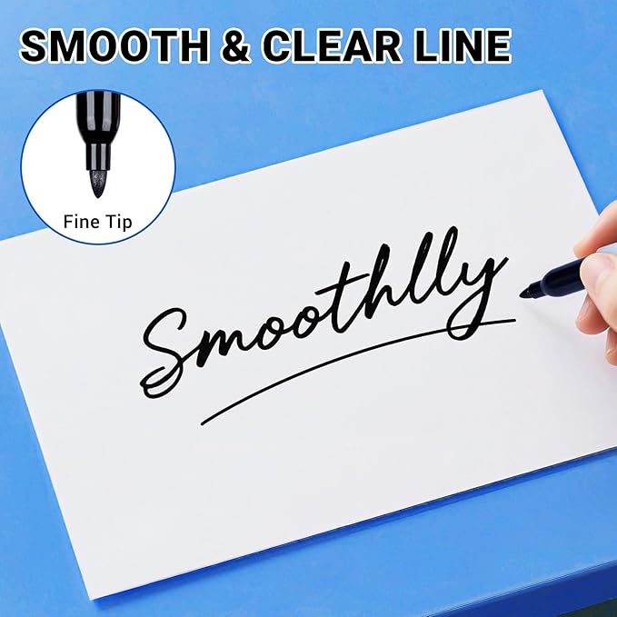 Black Permanent Markers 108 Pack, Black Markers Bulk, Fine Tip, Quick-Drying, Waterproof, Durable for Wood, Plastic, Metal, Glass, Paper - Office Supplies, School, Classroom, Home Organization