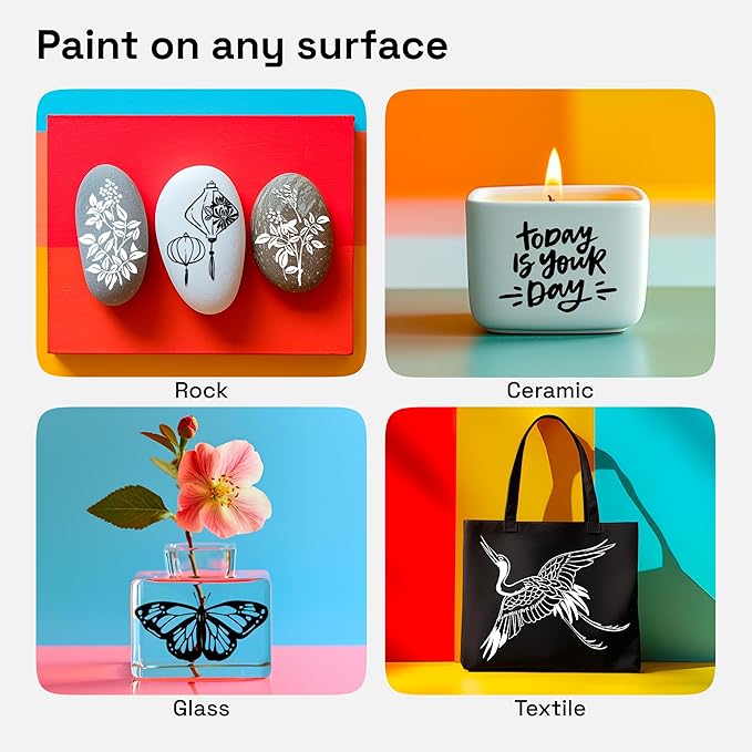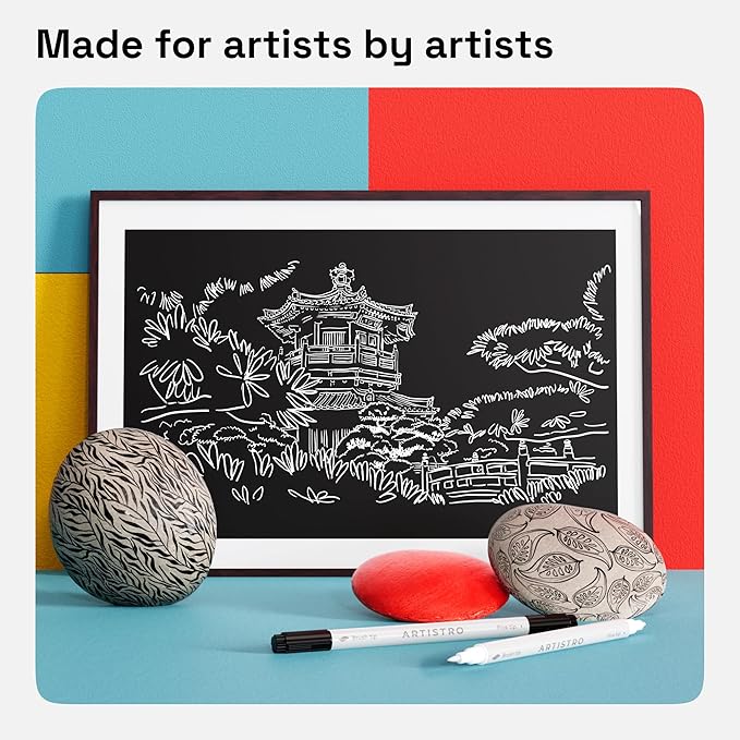 • ARTISTRO 2 White, Black, Gold, Silver Acrylic Paint Pens, Acrylic Paint Markers Dual Tip Acrylic Markers for Fabric, Canvas, Rock, Glass, Wood, Paper, DYI, Paint Markers for Kids and Adults