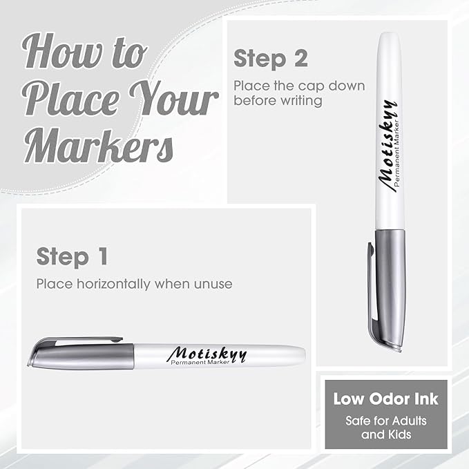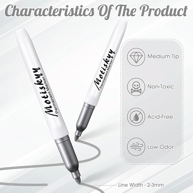 - Ink: fine point metallic markers pens use quality low-odor, non-toxic, acid-free ink with good coverage, creating a long-lasting opaque and glossy effect on light and dark surfaces; Note: after use, you need to cover the pen cap to prevent the ink from drying