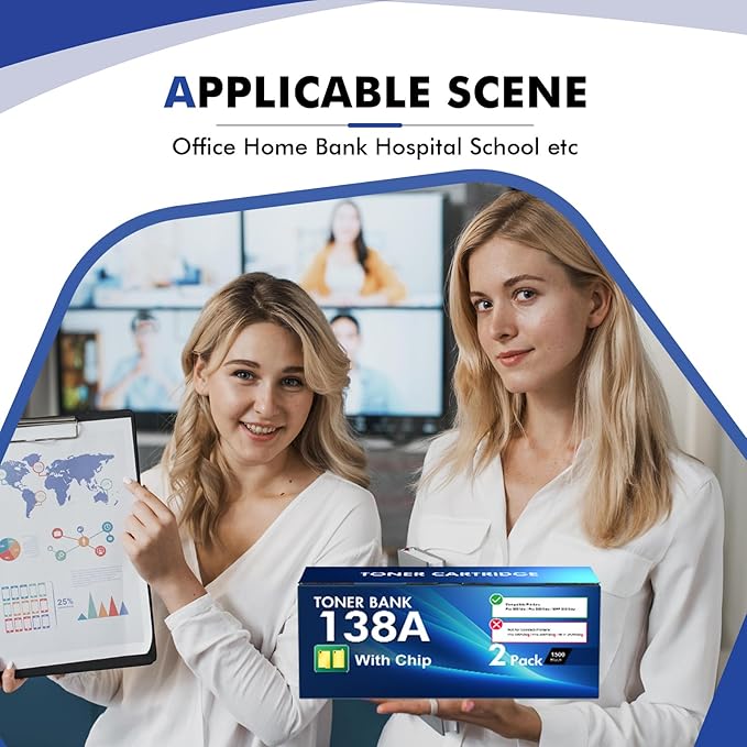 - Package Contents: 2 x 138A W1380A black toner with chip