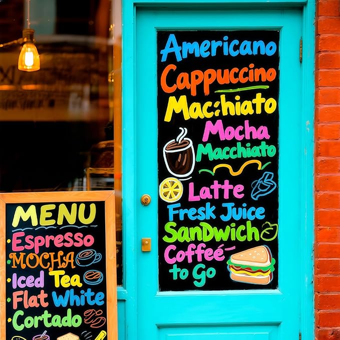 - 6mm Reversible Tip Chalk Markers - Liquid chalk markers come with reversible bullet and chisel tips allow for both precise details and broad strokes. High-quality ink writes smoothly, non-toxic and odorless. These liquid chalk board markers are perfect for holiday crafts, back to school, or as teacher supplies for classroom creativity