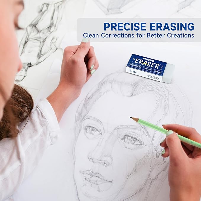 - Clean & Smudge-Free Erasing: Made from soft, latex-free, non-abrasive materials that erase smoothly without tearing or scratching paper. Taja erasers remove pencil marks cleanly and efficiently without leaving smudges or residue. Perfect for tests, sketches, notes, or designs, delivering precise, mess-free corrections every time.