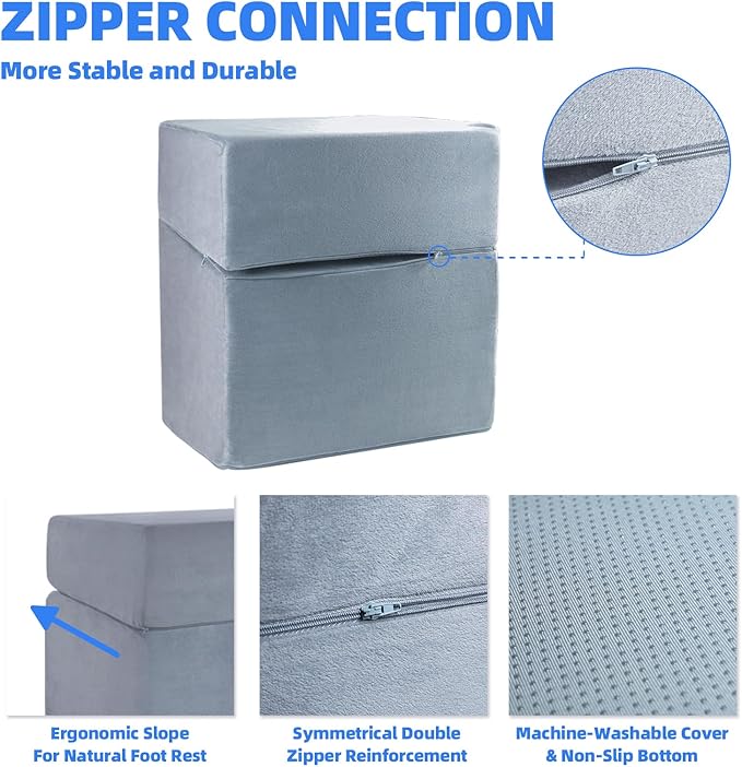 - [STABLE & COMFORTABLE] Unlike footrests with Velcro connections, ours features heavy-duty dual zippers to keep layers securely connected, while a double-layer non-slip bottom prevents sliding on any surface, making it a reliable foot rest for under desk in offices or home setups.