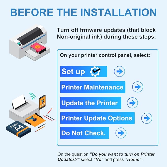 - 【Pre-Printing Warnings】Do not upgrade printer firmware before use – this prevents "unrecognized cartridge" issues with the 910xl ink during printing. Avoid touching the chip on the 910xl ink cartridge to maintain proper connectivity.