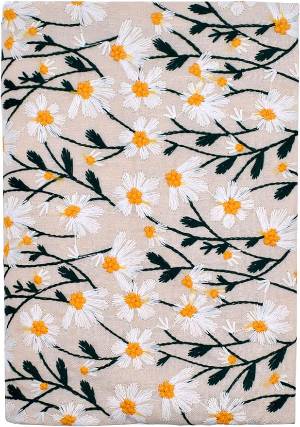 BLBMH Embroidery Book Covers for Paperbacks Fit for 5.5x8.5 inch Adjustable Book Sleeve Cover for Women Over 15 Soft Cloth Protector for Privacy Notebook Novels - Daisy 3
