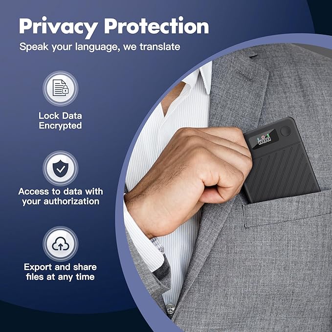- 【Data Privacy and Security】Local data encrypted, we ensure your recordings are kept secure and private with top-tier encrypted storage on both the device and our app. with data processing only upon your authorization. All recordings and transcriptions can be easily archived and shared, while ensuring complete data privacy.
