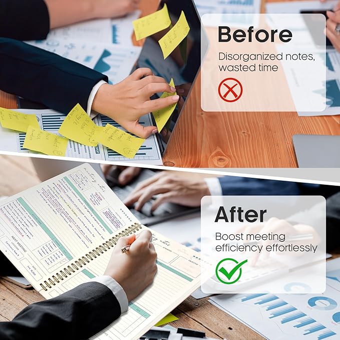 - Boost Meeting Efficiency: A meeting notebook helps you manage and streamline meeting details, ensuring discussions, decisions, and action items are accurately captured and organized. It promotes a more efficient workflow, allowing for easy reference and retrieval of information during and after the meeting.