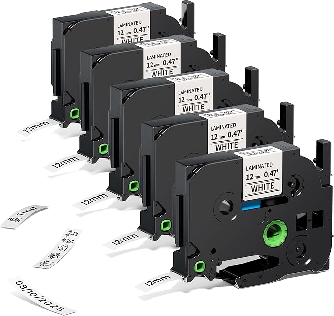 - 【Replacement for Ptouch Tape 12mm 0.47 white Clear and Easy to Read】Tze 12mm 0.47 laminated white tape Compatible with brother pt-2040 label maker tape refill printing is smooth and clear and is easy to read. Compatible with brother p touch tape themselves are slightly glossy, but do not cause glare under bright light, making them unreadable