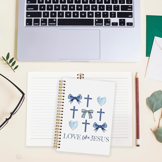 BearCake Love Like Jesus Christian Notebook Journal, Christian Gifts for Women, Blue Coquette Bow Cross Prayer Journal for Woman, Bible Journaling Hardcover Spiral Notebook 5.5x8.3