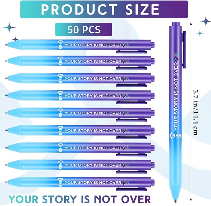- Suitable for Adolescent Mental Health Activities: our suicide prevention awareness pens are also ideal for use in addressing and promoting adolescent mental health through school and community programs; They convey essential mental health messages to the younger generation, providing the support they need during their formative years